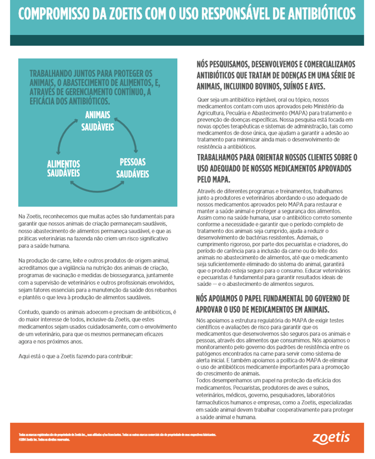 A ZOETIS DEFENDE O RESPEITO ÀS ESPECIFICAÇÕES DE BULA COMO MEDIDAS ESSENCIAIS PARA AJUDAR A REDUZIR O SURGIMENTO DE RESISTÊNCIA BACTERIANA.