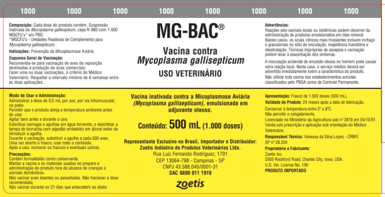 Vacina inativada contra Mycoplasma gallisepticum.