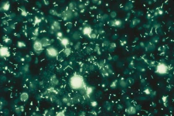 Figura 1 – Fotomicrografia da técnica de soro aglutinação microscópica (SAM) utilizando microscopia de campo escuro (Fonte: CDC - Centers for Disease Control and Prevention, Mrs. M. Gatton, figura 2888).