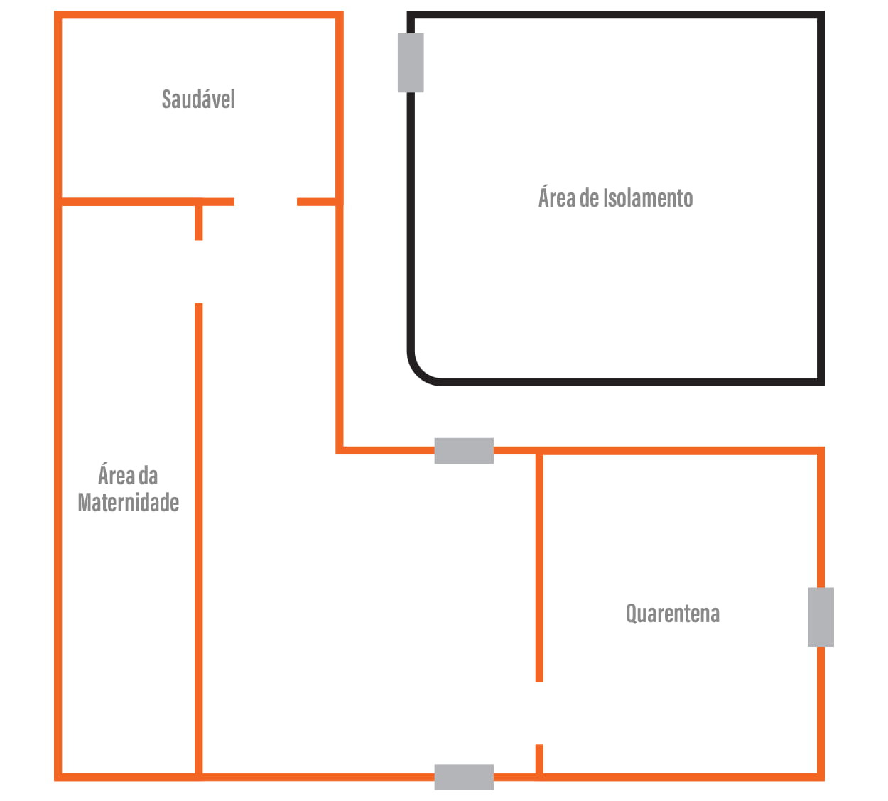 Uma adequada disposição dos recintos do abrigo ou sua adaptação pode auxiliar no controle de doenças infecciosas. O ideal é que existam pelo menos quatro áreas distintas: